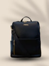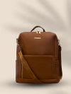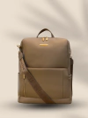 Bolsa Mochila estruturada com detalhes em metais inoxidáveis e couro ecológico.